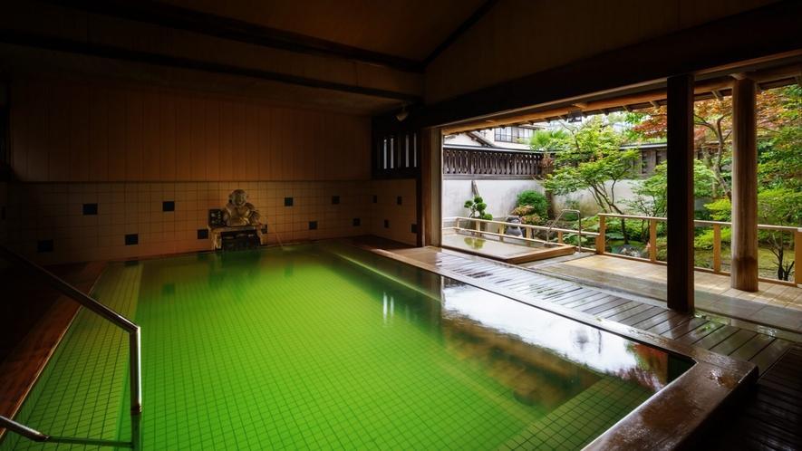 エメラルドグリーンのお湯は「美人の湯」や「不老長寿の湯」と称され、多くの体調不良に対する効能や、美肌効果などが期待できるとされています。