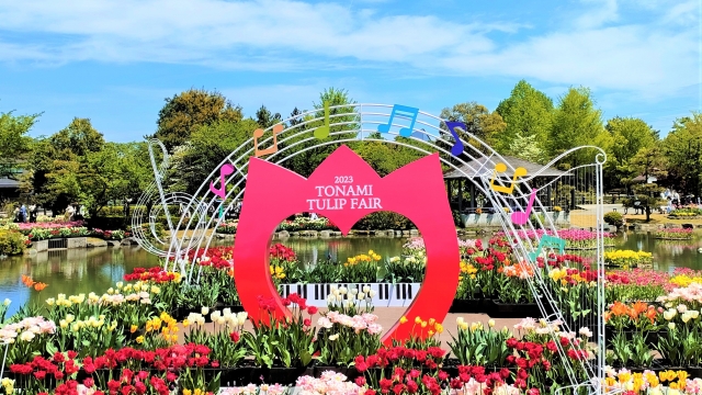 早春の時期に訪れれば、色鮮やかなチューリップ畑を楽しむことができます。