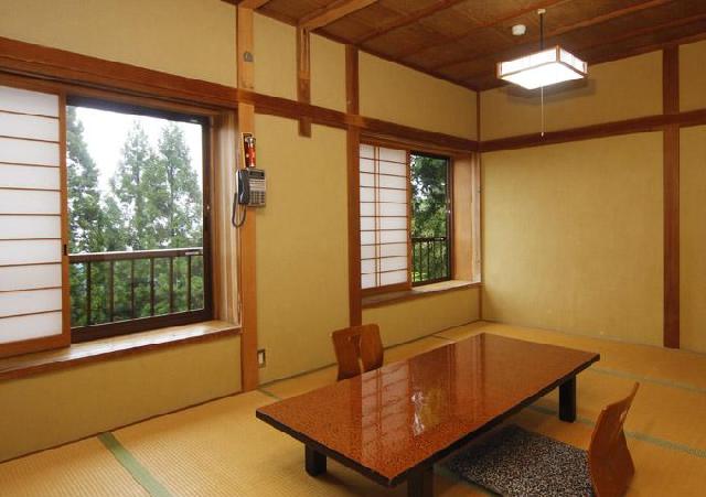 ケーブルカー御岳山上駅より徒歩8分、ビジターセンターより徒歩2分。四季折々の花々、春はカタクリ、夏はレンゲショウマ、ハマナス、秋は紅葉、冬はコウバイ。 玄関に北村西望作の畠山重忠公の馬上像が皆様をお迎えしております・部屋からかやぶきやねの家が見えます。
