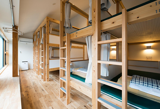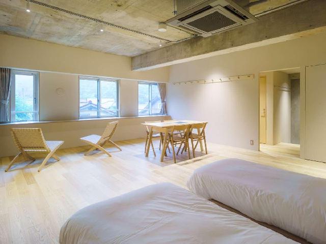 2Fは宿泊専用のスペースとなっています。各ドミトリールームのほか、水まわり付きの広いファミリールームもあります。すべてバンクベッドの山小屋に近いスタイルとなっており、1泊3,000円からのリーズナブルな価格で宿泊できます。あらゆる登山口の中心にある立地を生かし、早朝からの縦走、ナイトランの拠点、団体の合宿、ワーケーション滞在など、多くの目的に利用できます。
