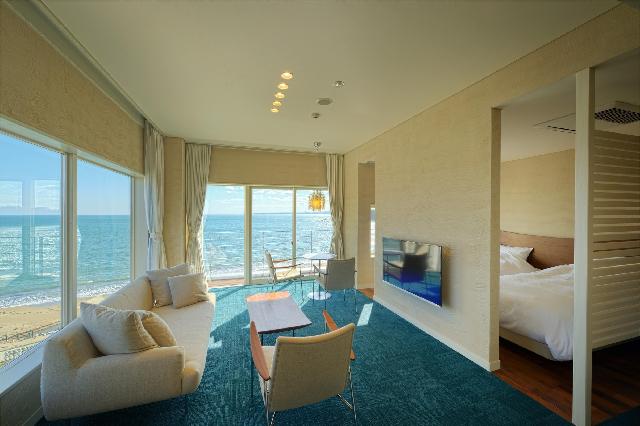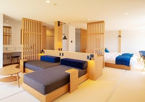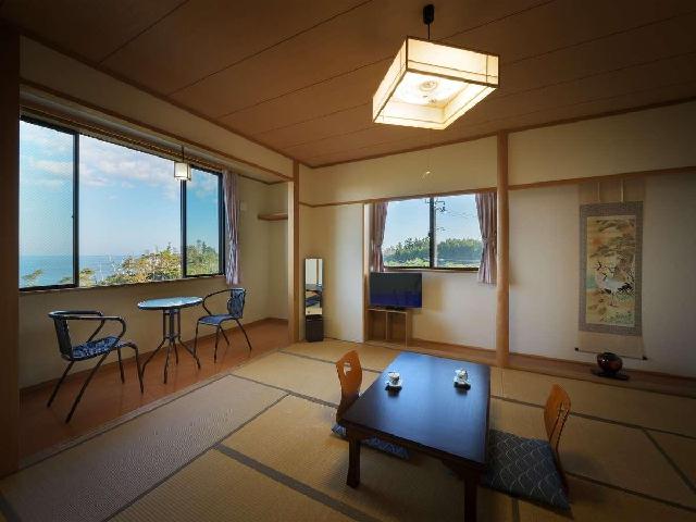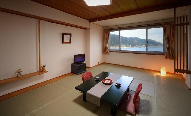また当宿は高台に位置しており、ダイニングや一部の客室はオーシャンビューでございます。季節によって、水平線から昇るすばらしい朝日が眺められます。1日5組限定だからこそ、ゆったりと過ごしていただける空間づくりを心がけております。