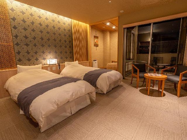 日が昇れば障子越しにやわらかな光が差し込み、夜には月明かりに照らされる、純和風の落ち着いた空間。特別会席など、季節を感じるお料理をご用意いたしますので、お部屋でごゆっくりとお召し上がりください。貸切風呂もご利用いただけます。