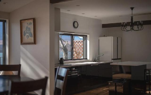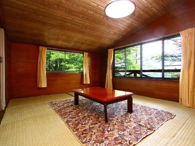 河口湖に隣接した山間部の閑静な場所にある吹き抜けリビング,2階建ての一軒貸別荘。敷地面積は約900平方メートル,三方山に囲まれ河口湖を遠望ができ河口湖畔までは徒歩5分です。20年以上前から山の中にひっそりとたたずむ一軒貸別荘を家庭の温もりを残しつつ、2021年に部分的なリノベーションにより、現代的な快適さと優雅さを加えています。居心地の良い和室、無垢材フローリング、天井高く明るいリビングはそのままにし、新しく洗練された家具やオープンキッチン、バスルームを加わりました。700平方メートルを超える自然の庭園と山、湖の景色を家族や友人が快適に優雅な時間を過ごせます。富士五湖をドライブするのに最適なロケーション。 車で6分以内にセブンイレブン、河口湖のほとりにある公園とカフェなどに行くことができます。また河口湖駅、レストラン、スーパー、ショッピングセンターへは11分で行くことができ、西に行けば西湖まで6分、本栖湖まで23分で行けます。