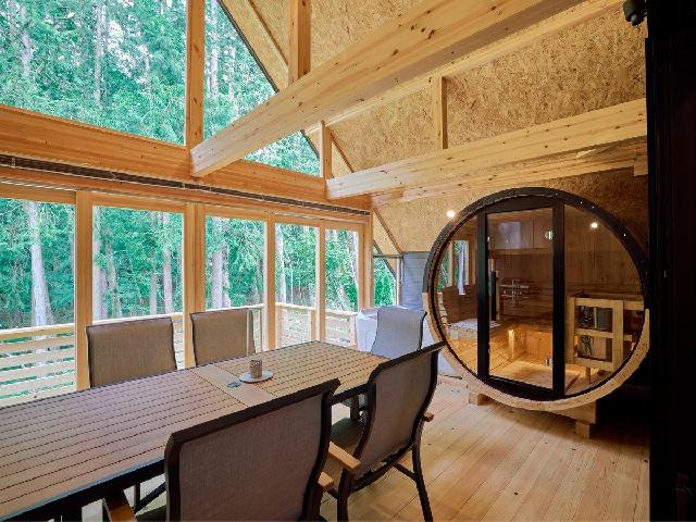 GRAN TOCORO.では 各棟に完全プライベートな バレルサウナとジャグジーを備え 森林を見ながらBBQをお楽しみいただけます。 森林浴をしながら優雅な一時を過ごしてみませんか?
