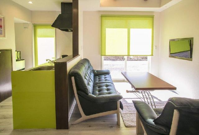 富士山を望むテラスとリビングルーム、和室、開放感あふれる大きなバスルーム、独立したシャワールーム、広々したキッチン、寝室(琉球畳の和室×1部屋、ダブルベッド2台を置いた洋室×3部屋)がございます。 白を基調にコーディネートされたスタイリッシュな空間を皆様でお楽しみください。 富士急ハイランドから徒歩3分。富士急ハイランド駅から徒歩2分の好立地