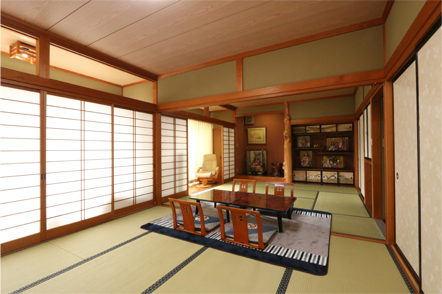 木々の間、湧き水の池の水面を吹き抜ける風が心地良い、富士山を望む茅葺きの古民家で二百年の歴史を肌で感じていただきたい。 湧き水池の美しい日本庭園と富士山の景色が融合した懐しい古里の宿です。 清らかな水で育った新鮮な魚、富士山の恵み野菜をふんだんに使った郷土料理を堪能していただく為の新しい形でのおもてなしいたします。
