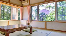 目の前の富士山と木々に囲まれた余裕の15室の宿 河口湖から15分で信じられない高原の清々しい心地よさと間近の富士山。 木々に囲まれたゆとりの15室の空間で、静かに落ち着いた時間と 自慢の会席料理でちょっと贅沢な休日をお楽しみ頂けます。