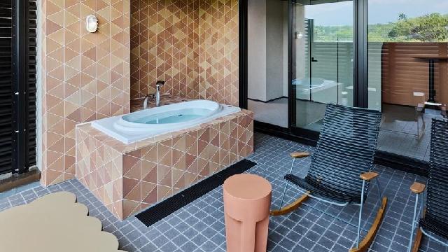 それぞれが独立したヴィラタイプの客室は、自然を最大限に満喫できるように配置。直線と曲線が組み合わさった独特なフォルムで、自然を身近に感じながらも、しっかりとプライベート空間も守られる設計となっています。大きな窓から自然の景色を眺め、川のせせらぎを感じながら、ゆったりとした時間をお過ごしください。