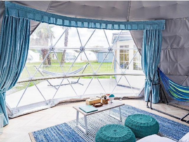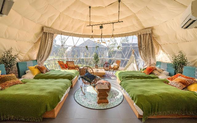 都心から60分とアクセスの良い千葉県富津市に 全20棟の関東最大級のグランピングリゾートが誕生。 5タイプのドーム型グランピングと アウトドアヴィラの全6タイプのお部屋は、 温泉&プライベートプール付き、 プライベートサウナ付き、キャンプファイヤー付き、 ペット同伴可などそれぞれに特徴をもっており、 楽しみ方や過ごし方も変わります。 お好みのお部屋で思うままにお過ごしください。 また、滞在を充実させるオールインクルーシブサービス 「7つのマルシェ」もご用意しており、 ここでしか味わえない アウトドアステイをご体験いただけます。