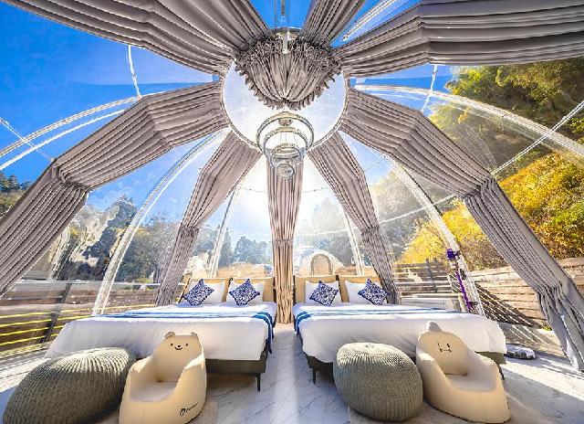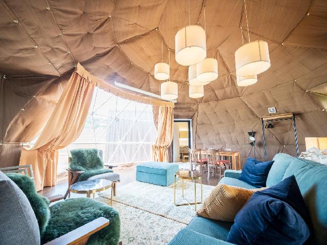 GLAMPROOK FUTTSU BRISTOL HILLの客室は、自然との一体感と上質な居心地を両立するためにリビングと寝室を分けて設計した日本最大級のツインドーム。全室ジャグジーバス&トイレを完備し、快適なひとときをお過ごしいただけます。