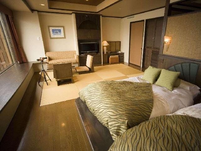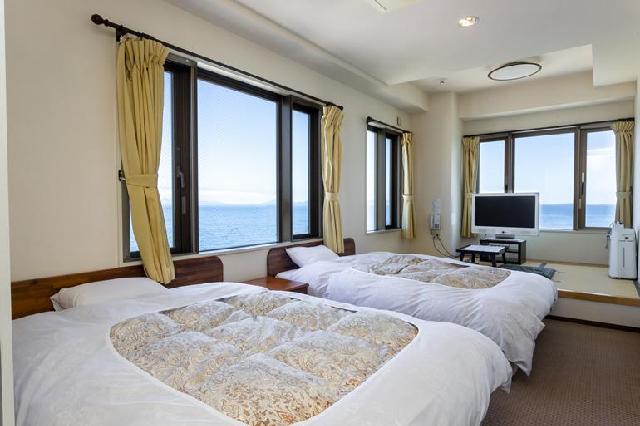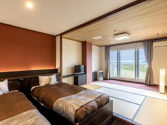 和室5室、洋室8室、ログハウス2室と小さい2階建ホテルですが全室オーシャンビューです。 春から秋にかけてはお部屋の窓から目前の海に沈む夕日を堪能出来ます。 また、流氷の時期はお部屋からの眺望が流氷で覆われたオホーツク海を楽しめます
