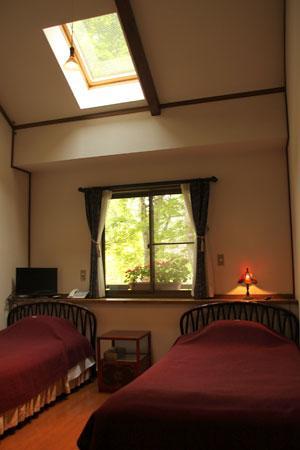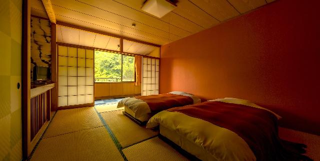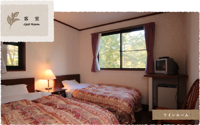 シンプルな客室で様々なシーンに対応します。窓の外には沢山の緑。四季の景色や小鳥のさえずりの中、静かに過ごせるプライベート・ルームです。