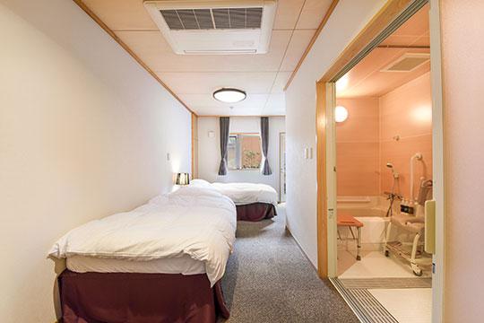 平成15年に天然温泉「ゆの里」の敷地内に、遠方からいらっしゃるお客様のためにつくりました。わずか18室のこじんまりした宿ですが、お泊りのお客様には天然温泉「ゆの里」では味わえない「金水」「銀水」「銅水」の3つのお水をブレンドしたお風呂に入っていただけます。