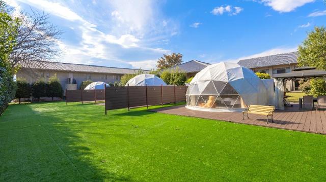 東京から約2時間、榛名山と利根川が織りなす優美な景観が広がる「ヘルシーパル赤城」の広大な敷地内に、群馬県渋川市初となる4棟限定のドーム型テントが登場。 大自然と遊ぶアクティビティやBBQ、渋川市(旧赤城村)が発掘した良質な天然温泉を満喫する、非日常のグランピングステイをお楽しみください。