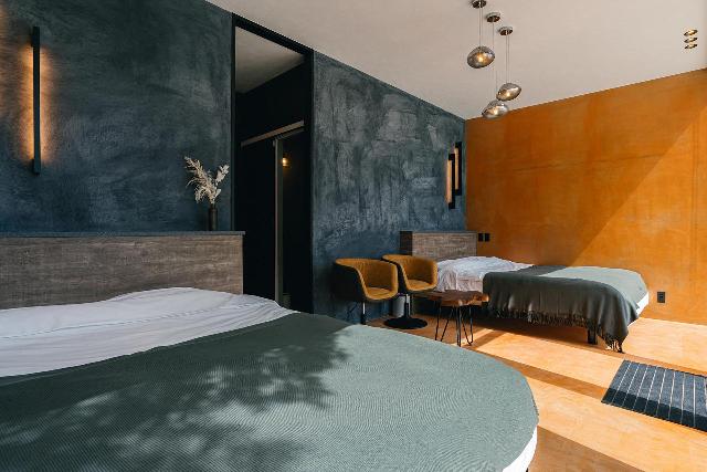 日本に古くからある“道後温泉”の真ん中に佇む「媛邸」。2023年4月にオープンした一棟貸しの宿には、コンセプトの違う2つの部屋が並んでおり、それぞれの室内には伝統文化や作品を装飾し、愛媛の魅力を伝えている。愛媛県内でもめずらしい、オートチェックインシステムを導入しており、支払いはカード決済のみ。誰にも会わずに、チェックイン・アウトが可能なので、スムーズに宿泊手続きができる。宿から徒歩約1分の場所には温浴施設の「道後温泉別館 飛鳥乃湯泉」と「道後温泉 椿の湯」があり、癒やしの時間が過ごせる。