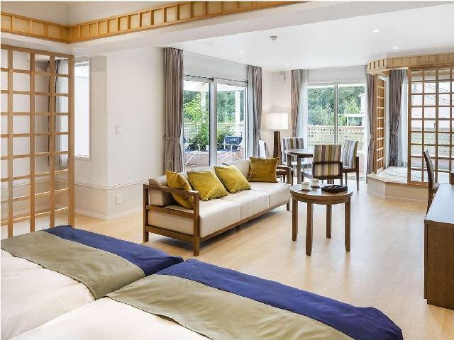 シンプルながらも必要十分な設え、洗練された日本の伝統美。 そこに現代的なスパイスを少々。 どこか懐かしく、温かく、落ち着ける空間がここにはあります。 窓に広がる成田山を眺めつつ、旅情に浸るのが贅沢なひと時。