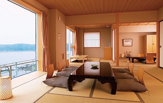 日本海を一望できる 全室スーパービュー 四季折々の情景を 心ゆくまでお楽しみください 部屋に入ると、窓の外には海。 開放感溢れるロケーションで、日常の慌ただしさから離れ、 癒しのひと時をお過ごしいただけます。