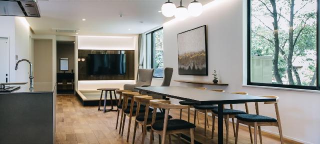 TEF(テフ) TANIGUMIは、岐阜県揖斐谷汲にある、わずか3棟のプライベートヴィラ。羽を広げた蝶のようなファサードからは雄大な自然が見渡せ、全てのヴィラで名泉「谷汲温泉」がご堪能いただけます。