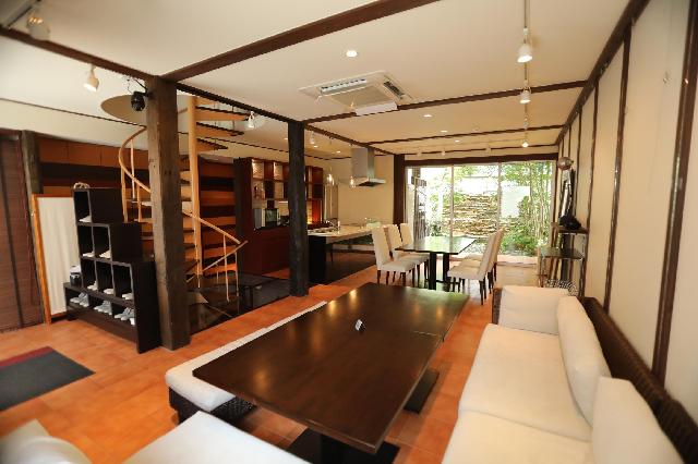 岡山城や後楽園近くの出石町にあるレンタルスペース。古民家をフルリノベーションした2階建ての贅沢な空間です。ゆったりとしたリビング、キッチンや浴室、寝室まで備え、宿泊からイベントまで多目的にご利用いただけます。