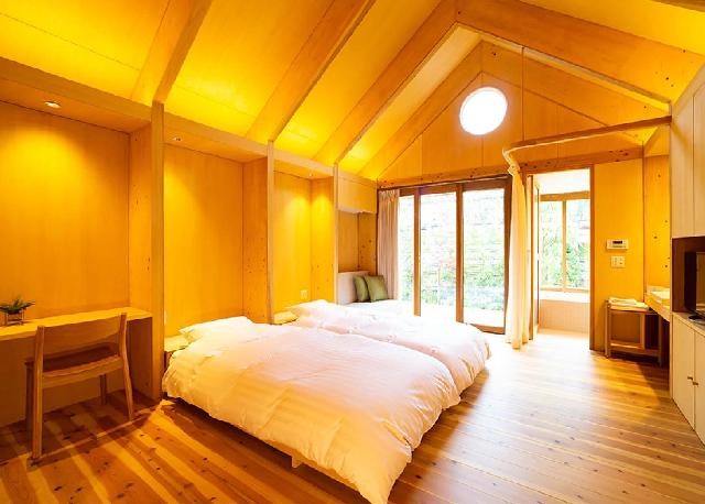 オシャレで洗練されたプチホテル ~2008年4月オープン!~ 静かな林の中でスローな旅を。洗練された客室は,全室に台所・書斎・テラスを完備。自炊ができるのでロングステイにも。併設の図書館での読書や,療養効果の高い炭酸泉めぐりの楽しみも。