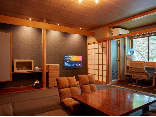 春山荘には、豪華なソファーやベッドはありません。その代わり、のびのび気兼ねなく足を伸ばせる和室の部屋を用意しています。座敷には、躍動的な青森の祭りとして有名なねぶたの作品が飾られ、その作品を静かに眺めるのもまた、趣があります。