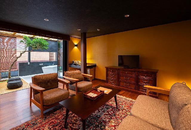 1日1組限定の完全プライベート空間 誰にも邪魔されない 日常から閉ざされた世界へ 伝統と革新が織り成す空間美は、贅沢でゆったりとした時の流れを演出します。内部空間から土間を介在した外部空間を見渡すと、澄み渡った青空と古の昔から姿を変えぬ木々の静寂の中で、野鳥の囀りが心地よく響きます。何もしない贅沢を選ぶのもよし。肥沃な大地へ飛び出すのもよし。本当の「自由」がここにはあります。