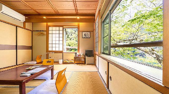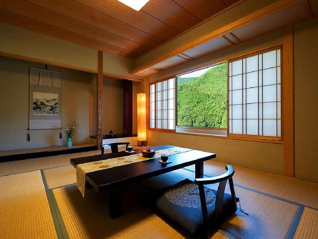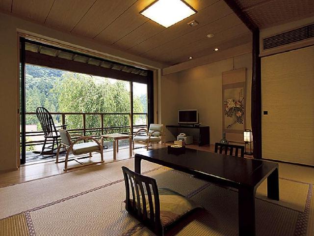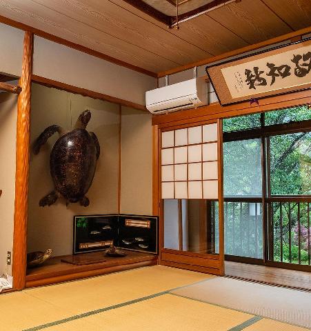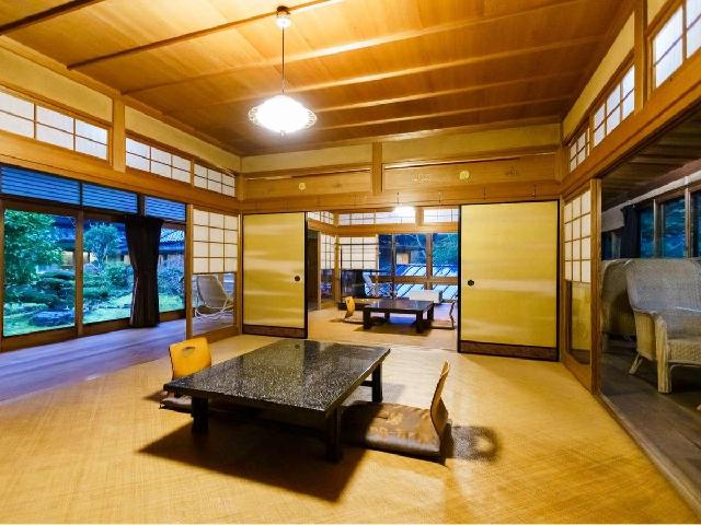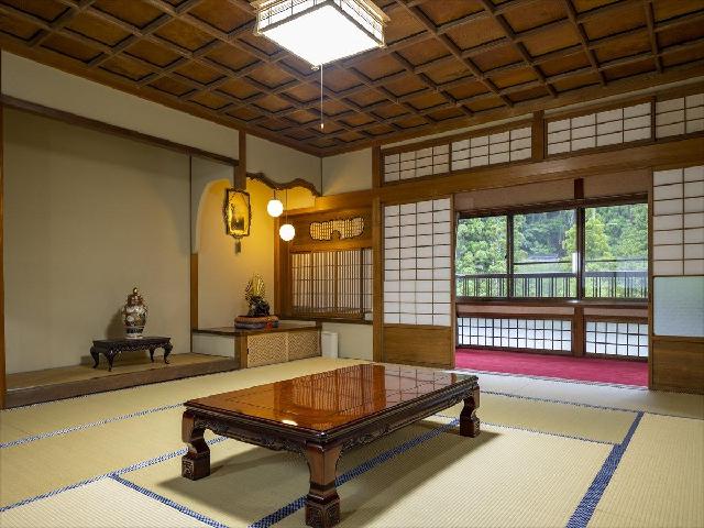 都会での生活音を一切感じず、ただ自然の音に耳を傾け、緩やかな時の流れを。 本館と迎賓館を合わせて300坪の建物は「ロの字」形で建っており、 それぞれの客室には専用玄関と庭を配しております。 そして天然炭酸泉の温泉は、最高級の浴槽とされる槙風呂にてご入浴。 鷲家川や坪庭を眺めながらご堪能くださいませ。
