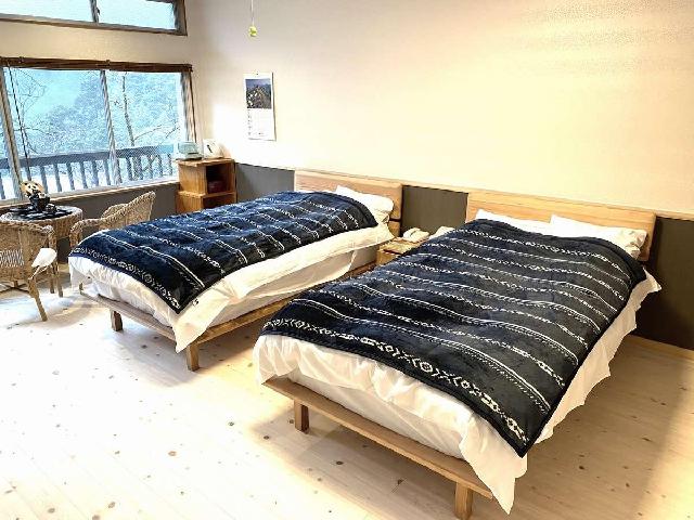 十津川材をふんだんに使った、木のぬくもりを感じられる 全室シングルの洋室を4部屋ご用意しております。 ・共同キッチン、ランドリーあり ・全室にプライベートバスルームあり ※温泉は、本館やまとやのお風呂を無料でご利用いただけます ・徒歩1分に駐車場、スーパーあり ・夕食、朝食、お弁当のご希望はドライブイン長谷川にて承ります