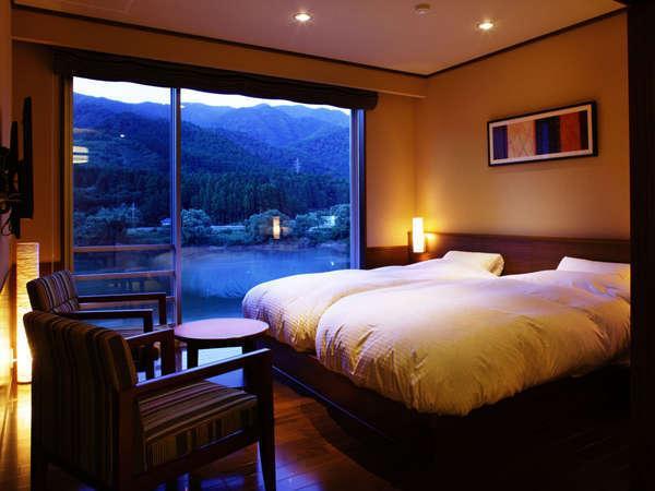 新潟県五泉市の温泉地 咲花温泉 阿賀野川のほとりに佇む温泉旅館「ぬくもりの宿 佐取館」。絶景の阿賀野川を眺め浸かるエメラルドグリーンに輝く翠玉の湯 源泉掛け流し展望露天風呂 客室から阿賀野川を一望