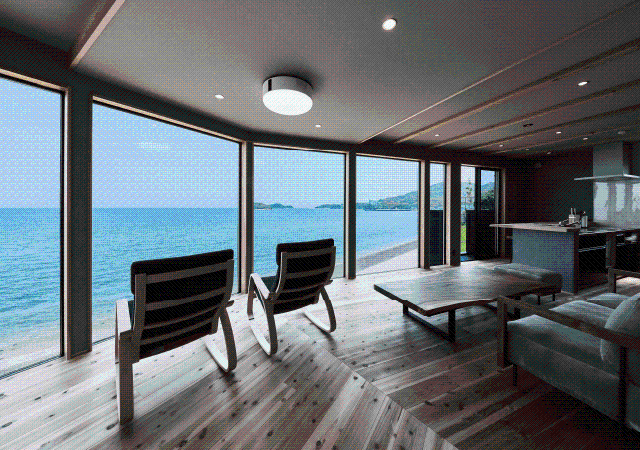 潮騒の奏と心地よい海風に包まれた、1日1組限定の一棟貸しヴィラ。 エントランスを抜けると、ターコイズブルーに輝く瀬戸内海の穏やかな海が広がり、大空を舞う白いカモメが皆さまを温かく迎えてくれます。建物に配された大開口のピクチャーウィンドウからは、まるで美術館に飾られた一つ一つの絵画のように、見る窓によって変化に富んだ瀬戸内の風景を楽しませてくれます。滞在中、住まうように過ごしていただけるよう、くつろぎと憩いの洗練された環境をご用意しております。高松自動車道津田東ICから約1分。四国の主要観光地へのアクセスも抜群です。