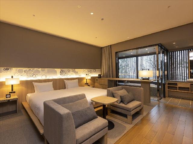 中庭を囲むように建てられた当ホテルは9階から12階にあり、多くの客室からは四方の景色(阿蘇の山々、金峰山、熊本市内のまち並み、有明海の遠景)がそれぞれお楽しみいただけます。 平均27㎡と広めの客室は、熊本の自然や光の陰影を感じられる落ち着いた雰囲気が特徴的です。 熊本の自然、文化、伝統を随所に取り入れた1室だけの特別なスイートルーム「離れ~THE SUITE」(126㎡)もご用意しております。