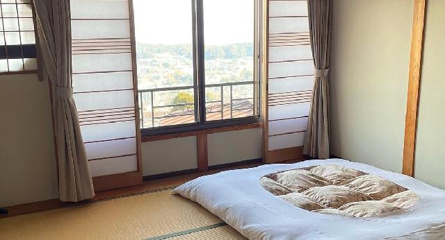 奈良県生駒市でのお食事や宿泊は、宝山寺参道沿いにある旅館《門前おかげ楼》へ。美味しい十割そばのお食事処六根亭。奈良の絶景が一望出来る客室。