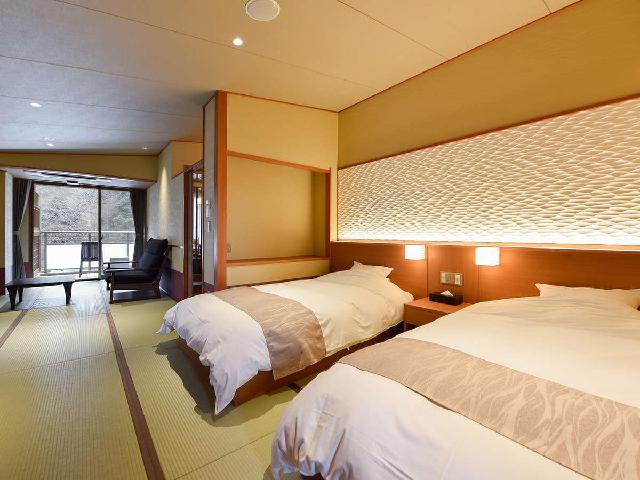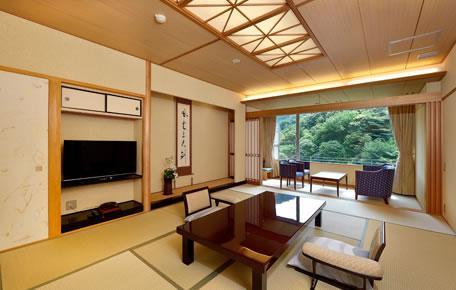 鴻朧館から目の前に迫る壮大な「落葉山」と 眼下の「滝川」という美しい景観が、 客室やお風呂など、館内中でご覧いただけます。 効能豊かな自家源泉や、地元食材を贅沢に使った 料理の数々、そして鴻朧館ならではのおもてなしで お客様のご滞在をより上質に演出いたします。